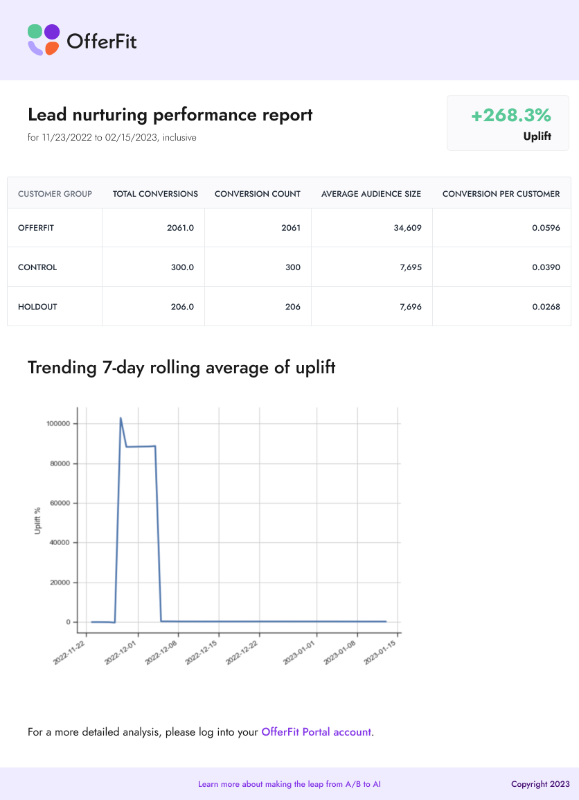 Let AI tell you what offers work best for your customers by optimizing KPI's through machine learning
