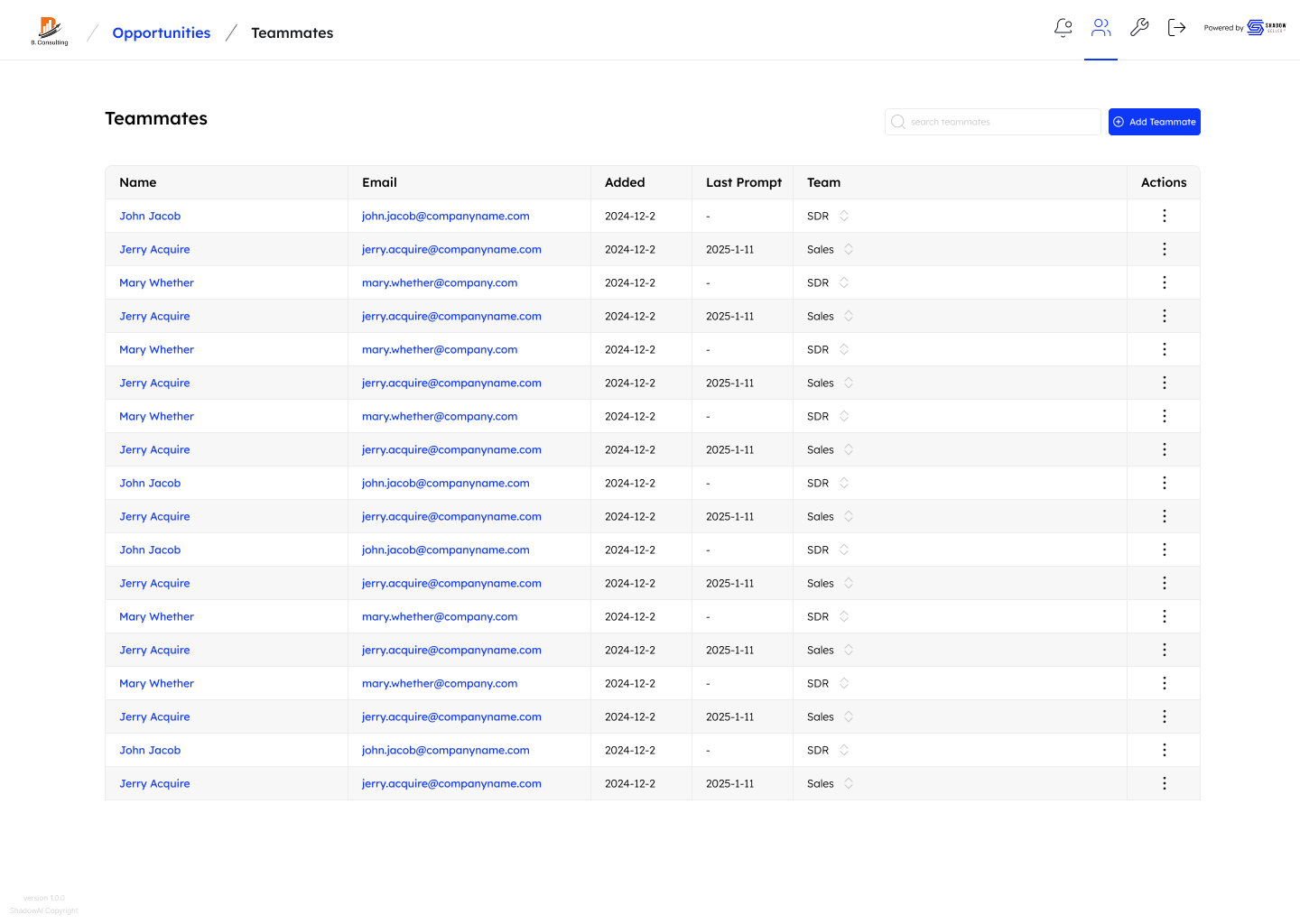 Features: dedicated sessions based on the account and sales pursuit, broken into stages and showing a prompt library to encourage engagement and follow up question ideas. Dedicated history and assets section to always have your work saved for you.