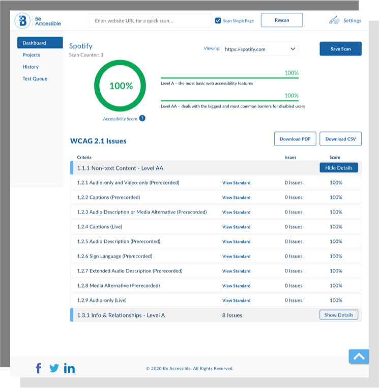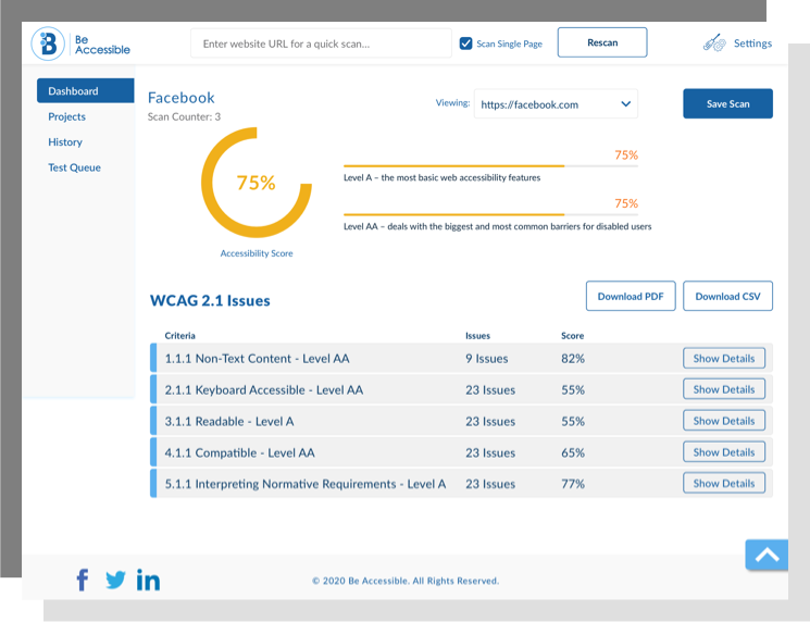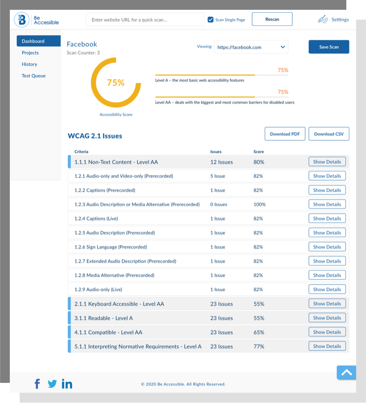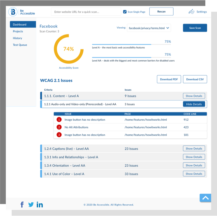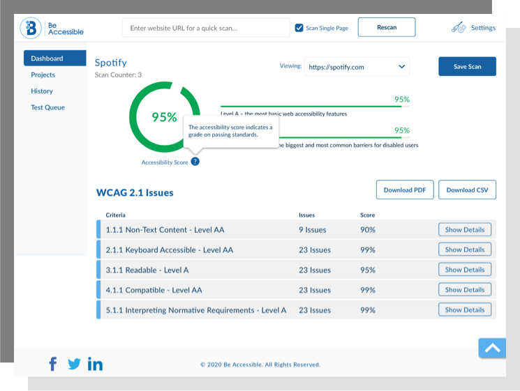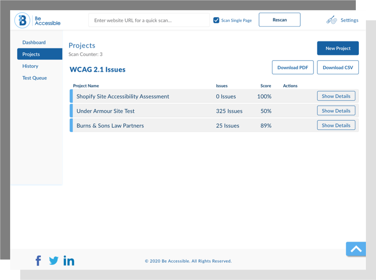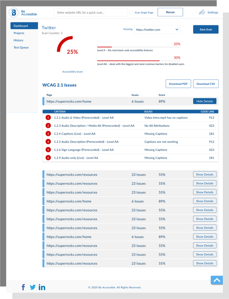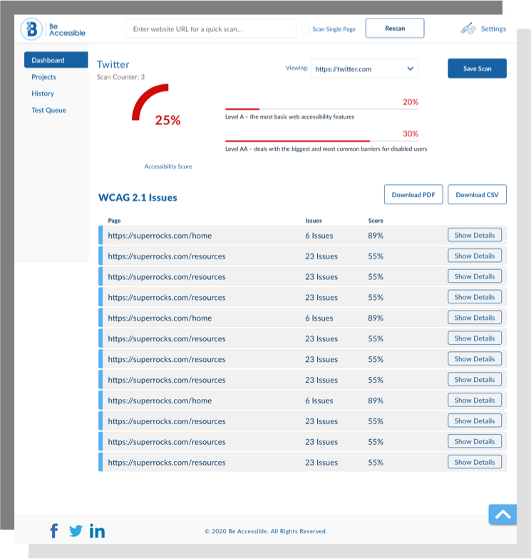The Challenge: Create a simple dashboard for website scanning for accessibility issues