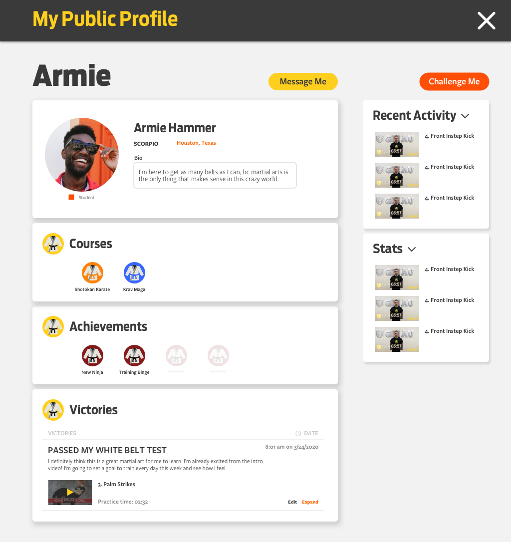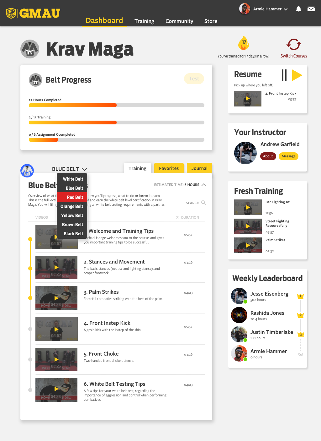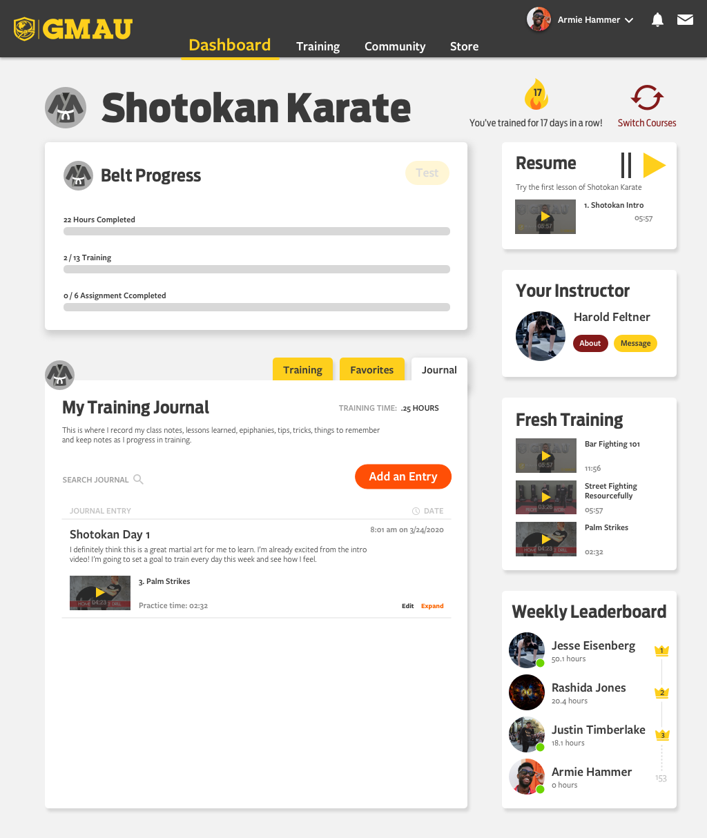 Educational Project - Redesign Online University for Martial Arts to incorporate new features and gamification for students
