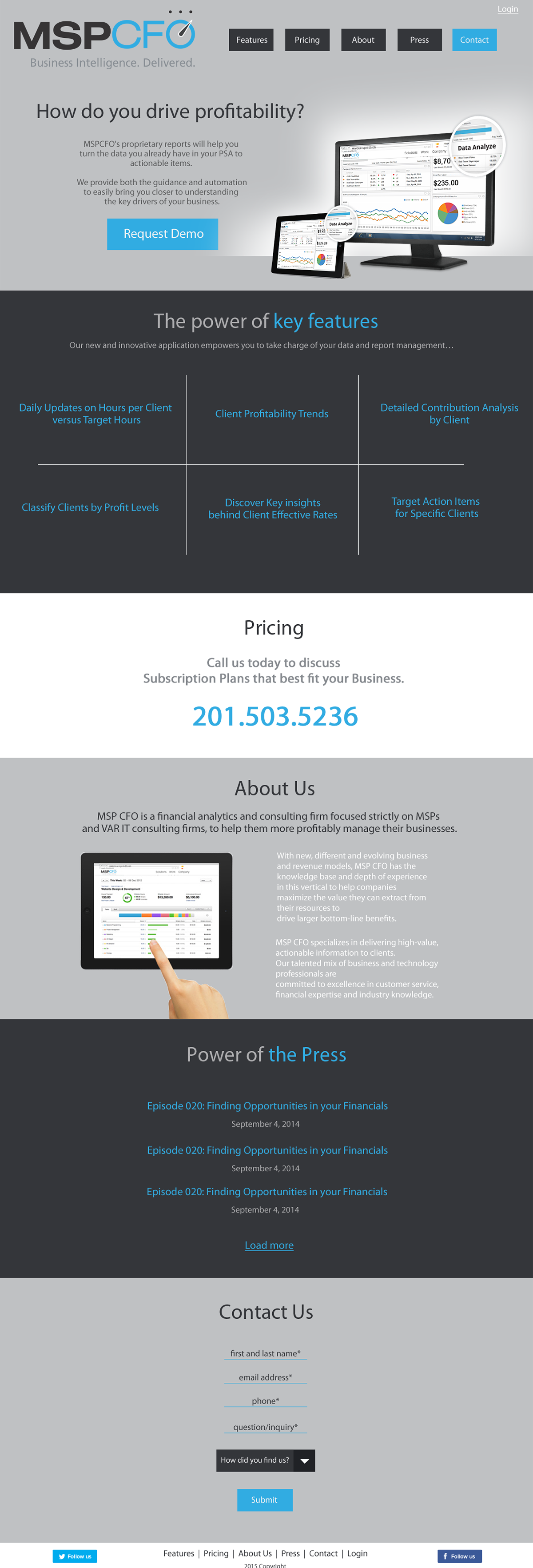 Redesigned landing site to match branding and improve conversions (sign ups and demo requests) for a financial monitoring software used by technology experts