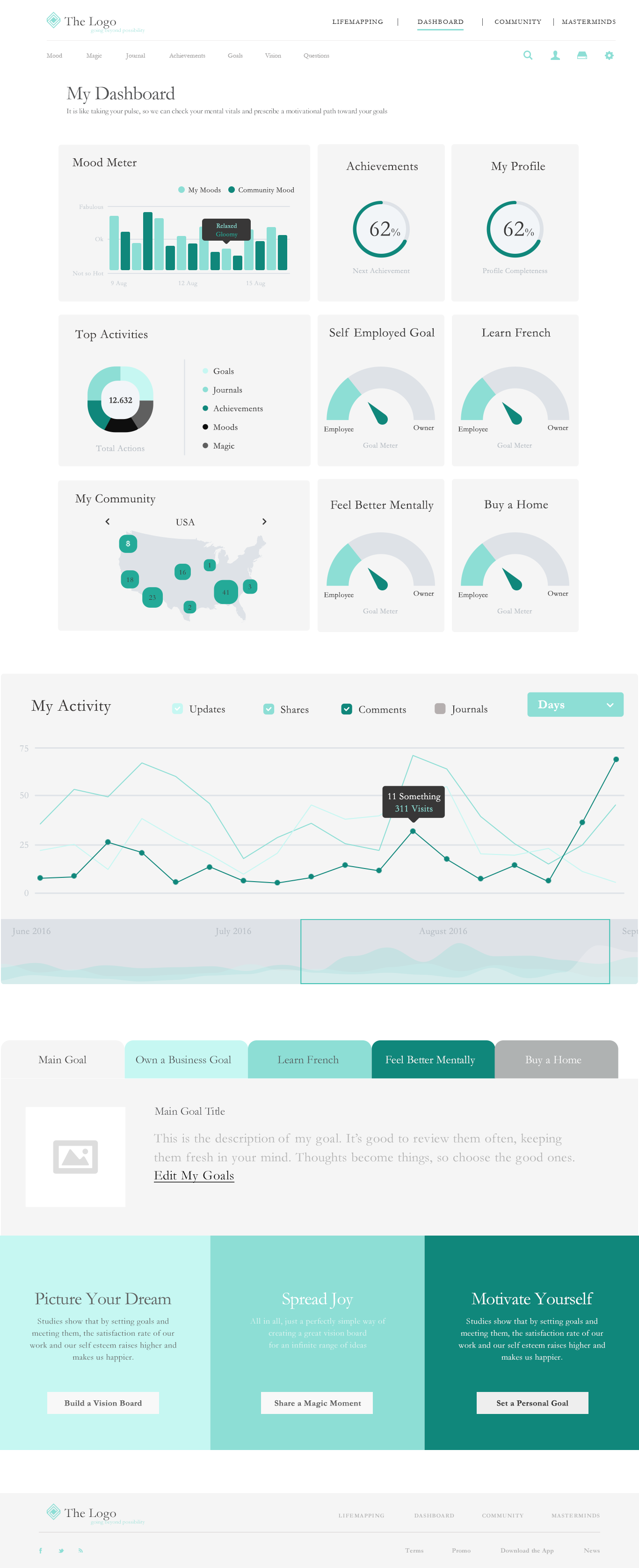 start up, Wireframes, design, testing, content expert group with international team to create an intuitive and fun to use experience that allows people to reach their goals and dreams