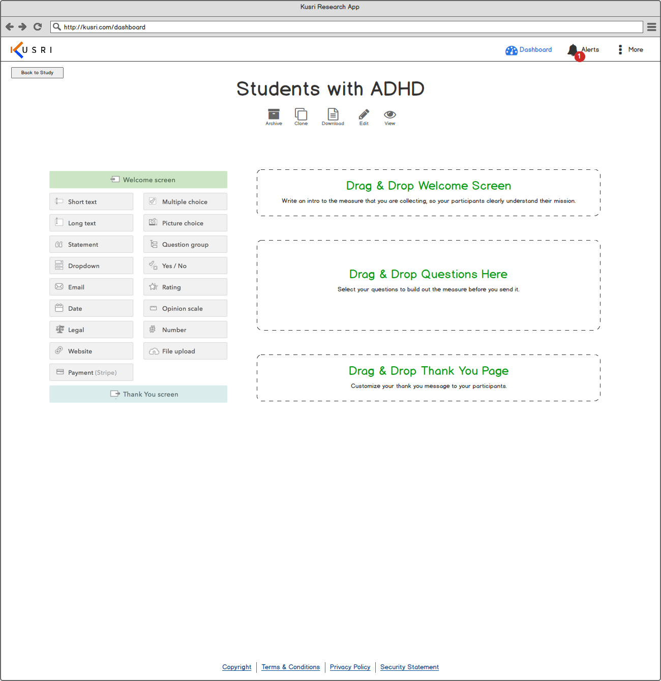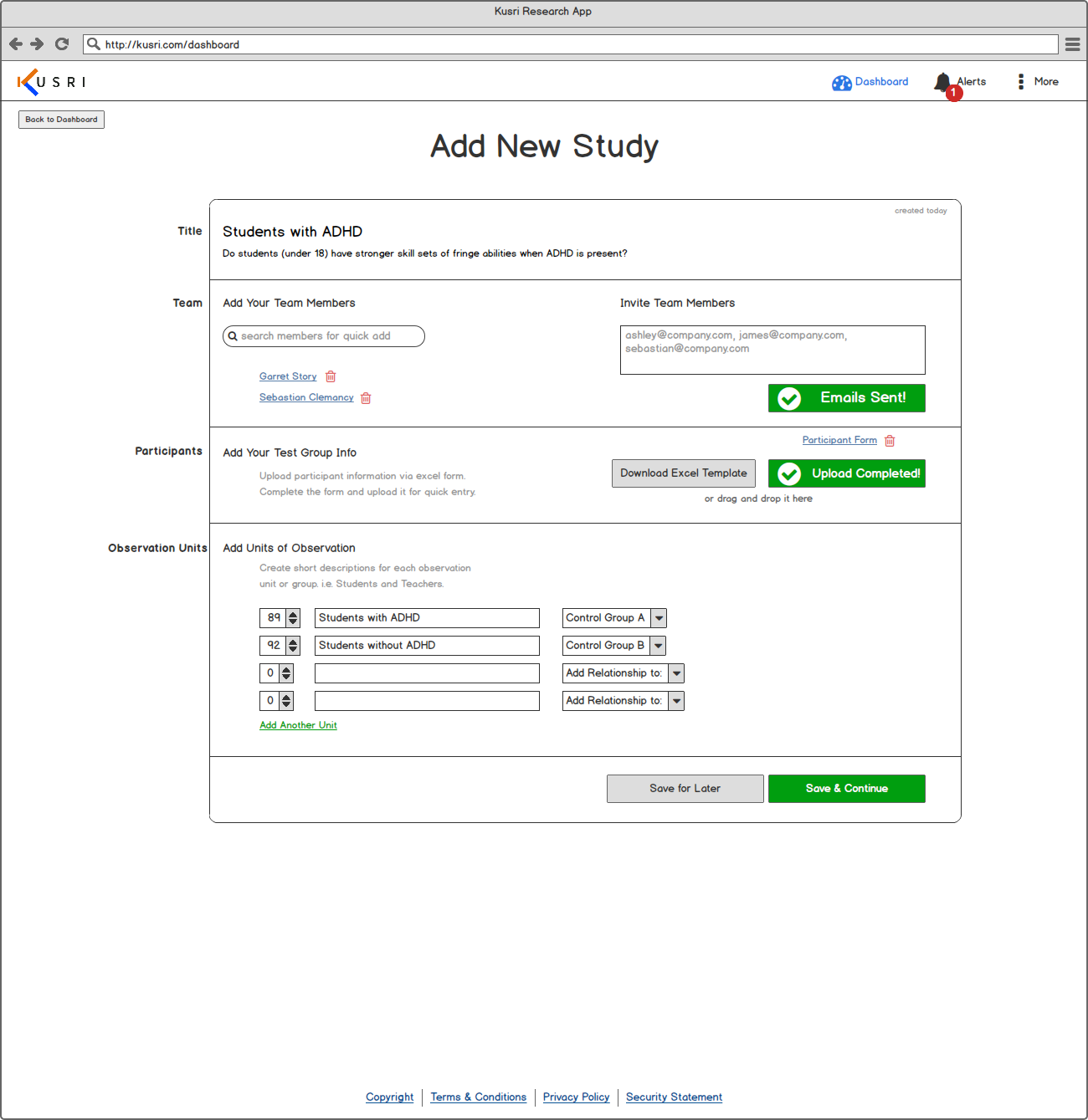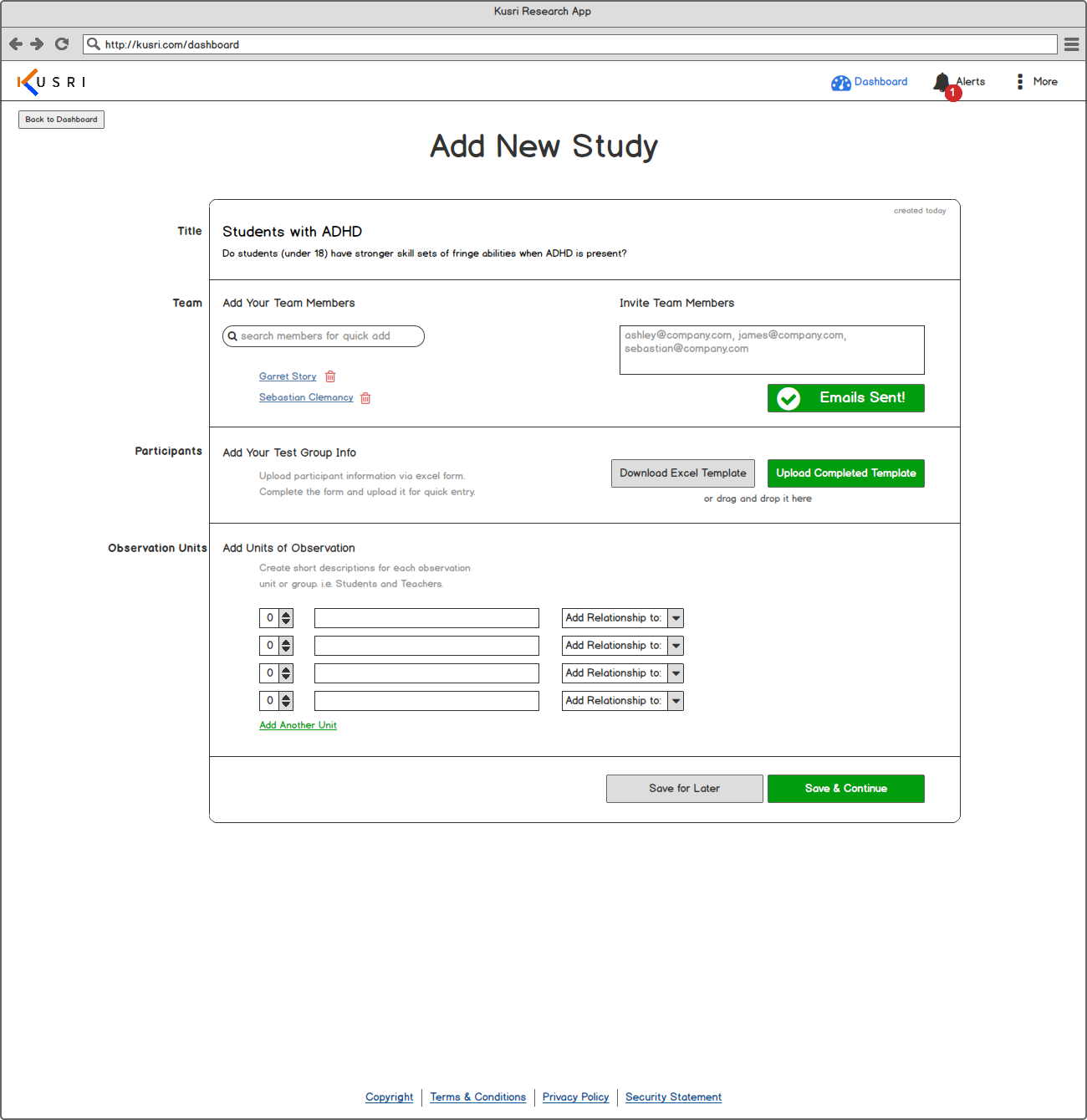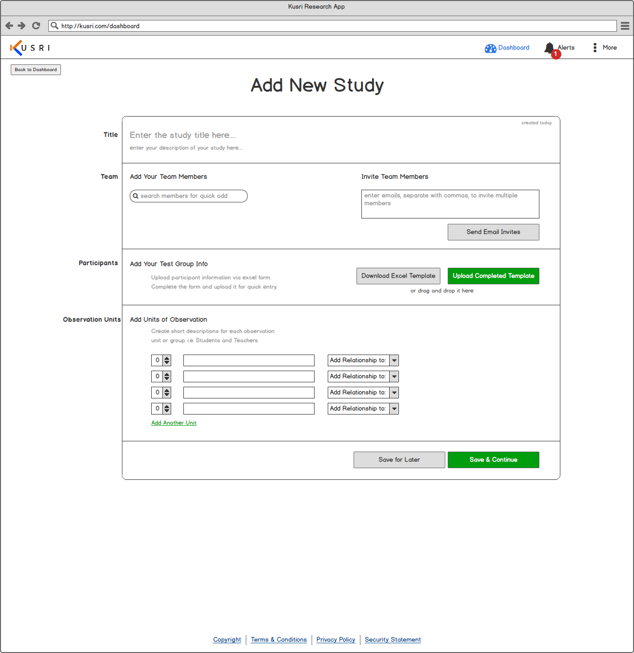 Goal: To design an intuitive process for researchers to enter their studies